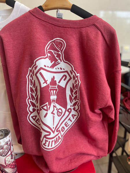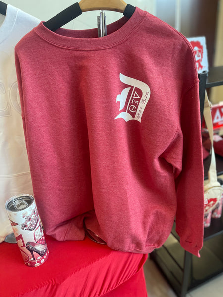 This Heather Red cotton crew neck sweatshirt offers comfort and pride with its soft fabric and classic fit. Featuring the Delta Sigma Theta shield boldly displayed on the back and a graceful calligraphy "D" representing Delta on the front left chest, it’s designed to show your unwavering support and connection to the sisterhood. This sweatshirt keeps you cozy while honoring a legacy of strength.